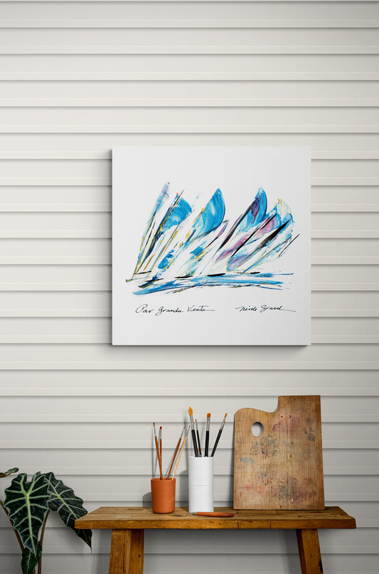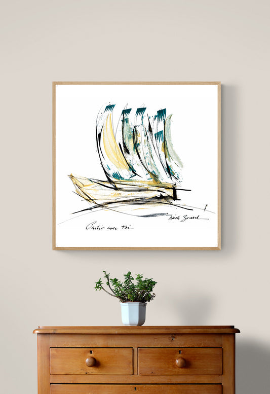 Dans tous les tableaux de Nicole émanent une joie profonde et un amour de la vie insulaire. Son geste est automatiste, sans esquisse au préalable, ses mouvements sont vifs. Ses choix de couleurs vibrantes et de textures franches font émerger de son oeuvre un regard insulaire contemporain, singulier et unique. Vous devinerez son attachement profond pour les bateaux et les voiliers hardis au milieu des régates.