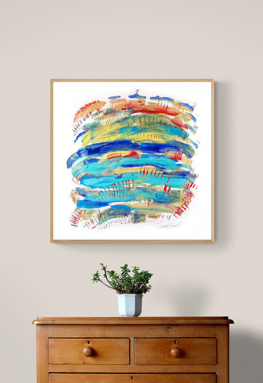 Dans tous les tableaux de Nicole émanent une joie profonde et un amour de la vie insulaire. Son geste est automatiste, sans esquisse au préalable, ses mouvements sont vifs. Ses choix de couleurs vibrantes et de textures franches font émerger de son oeuvre un regard insulaire contemporain, singulier et unique. Vous devinerez son attachement profond pour les bateaux et les voiliers hardis au milieu des régates.